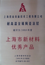 上海市新材料優秀産品(2006)